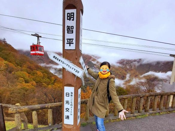 (下圖) 明智平的展望台,放眼望去滿滿紅葉,請大家帶好相機、做好保暖,才能美美的拍照!日光遊是我在2019年11月出發,但那時剛買新手機不太熟,紅葉拍起來一片橘,哪有現在的AI自動修圖的功能,大家出發前一定要Check手機拍照狀況。